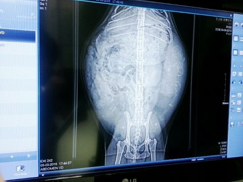 엑스레이 사진에서 보시면 오른쪽에 동글동글한 것이 아가들입니다.