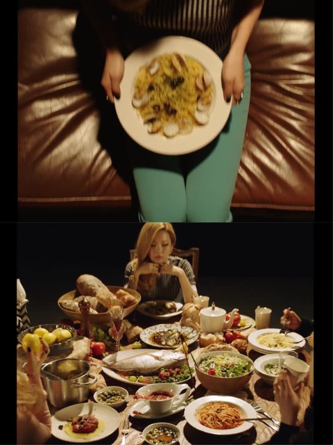 처음에 슬기가 파스타를 들고 서있다가 파스타를 들고 식탁위에 올려놓고는데 식탁을 쭉 훑고 풀샷이 잡힐때는 슬기 앞에 음식이 파스타가 아니라 다른음식임