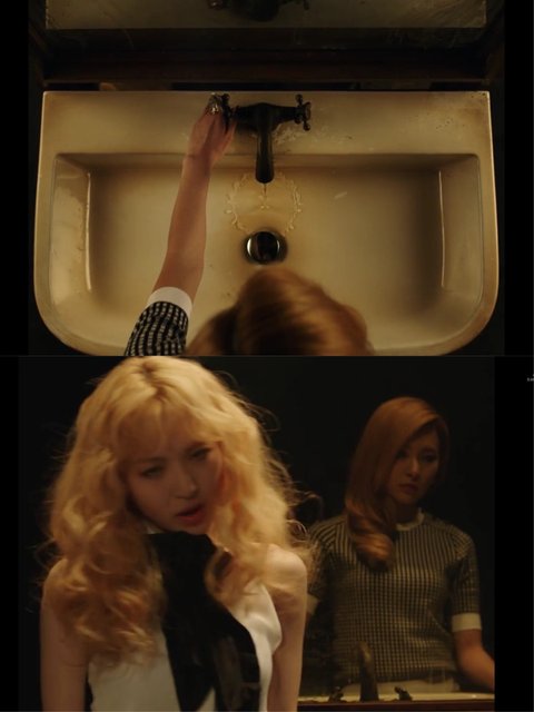 그리고 슬기가 걸어가서 물을 트는데 나중에 웬디가 걸어와서 거울 반대편에 서는데 그때 슬기를보면 물이 안나오고 있음