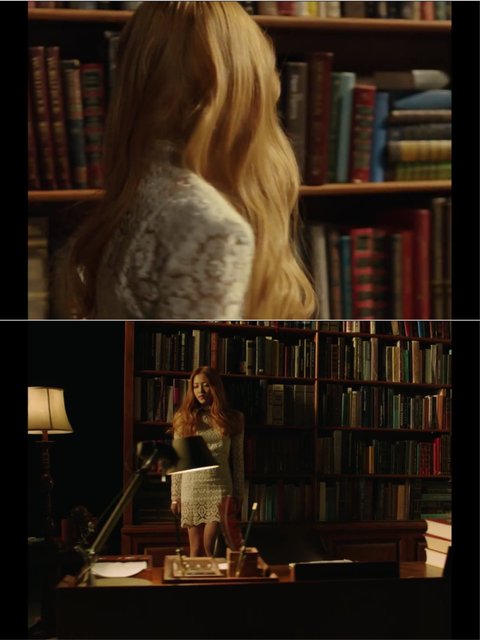 그리고 예리가 책을 뽑으러 걸어갈때는 오른쪽에 책이 6권이 눕혀져있는데 풀샷이 잡혓을때는 그 눕혀져잇는 책들이 없어지고 세워져 있음