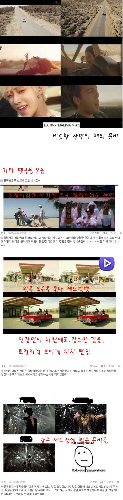 진심 레드벨벳은 주유소에서 춤추고있는 전혀똑같지도 않은 장면 캡쳐해서 자기네뮤비랑 비교 시켜놓은 이유가뭔데