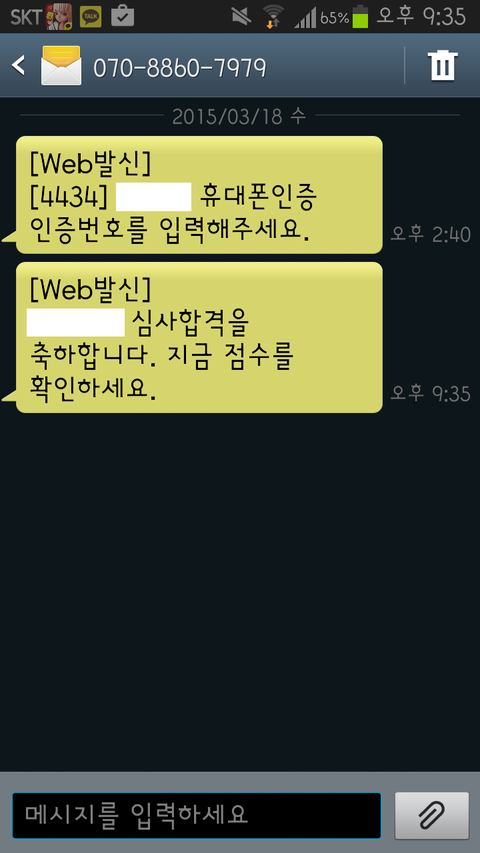 그리고...이게 뭐라고 이렇게 붙으니 문자도 오네요. 대학 합격한...줄..