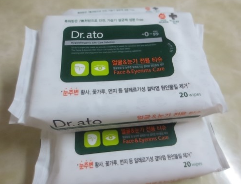 닥터아토 얼굴&눈가전용티슈는 안자극테스트 완료한 제품이라