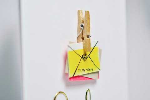 이건 작은 집게를 사용해서 만들어 봤어요. 편지봉투는 손으로 직접 그리고 칠하고 오렸어요.