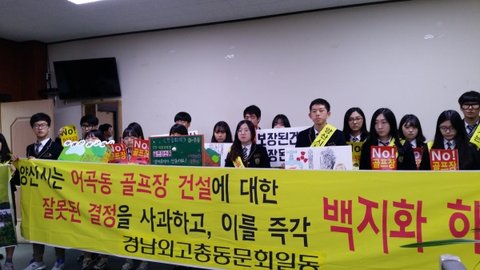 학생들 모두가 한마음으로 골프장 계획 철회에 힘쓰고 있습니다!