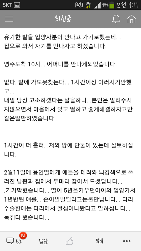 원글 글쓴이 분 지금 계속 우시고 떠시고