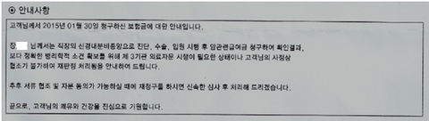 위 안내사항에서 고객님의 사정상 협조가 불가하여 재판정 처리됨을 안내하여 드리며 재청구를 하라고 답변이 왔습니다.