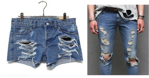 정의상으로는 청바지를 오래 입어서 헤진 모양을 인위적으로 만들어내는