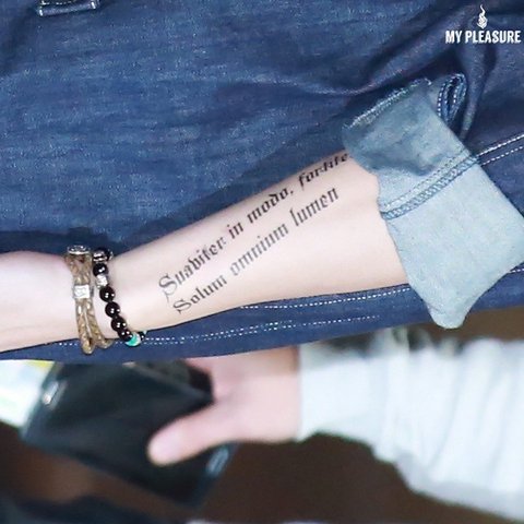 오늘 뜬 공항사진인데 콘서트 때와 문구 위치가 바뀌었어! 위치가 바뀐 걸로 봐서 헤나로 생각하고 있어.. 하나 더 추가되었구 저기 희미하게 보이는 해피니스 딜라이트는 아직까지도 그대로있는 걸 보면 아마도 문신인 것 같아