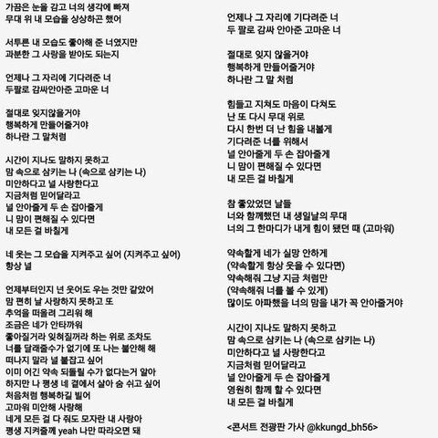 원래 무슨 수록곡 들으면 좀 이 소절은 특히 애정이 간다 이런 가사 한줄이 있는데 약속은 애들이 만든 것도 큰 의미지만 가사가 너무 애절하고 우리가 다 겪은 거니깐 진짜 너무 가사 하나하나 다 이쁘다