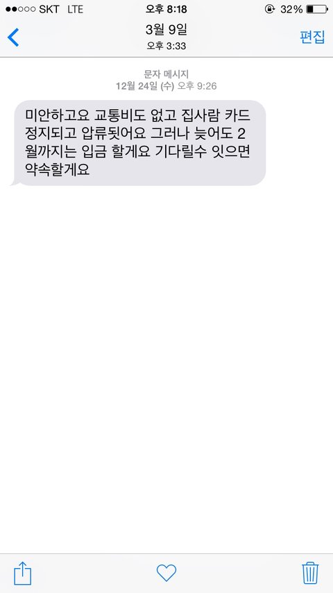 그런데 보름이 지나도 안넣어주시길래 또 여쭤봤더니 돈이 없다 부인 카드 압수됐다 이러시면서 하소연을 하시는겁니다...