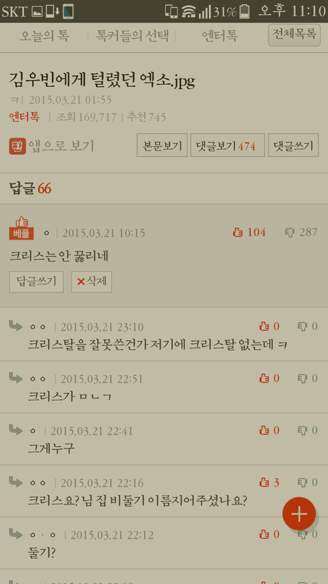 나 그냥 아무생각 없이 댓글달았는데