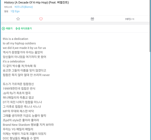 한 언더랩퍼가 쓴 힙합 히스토리 곡인데 밑에서 두번째줄 보셈