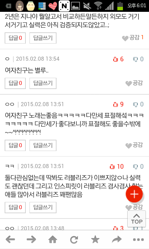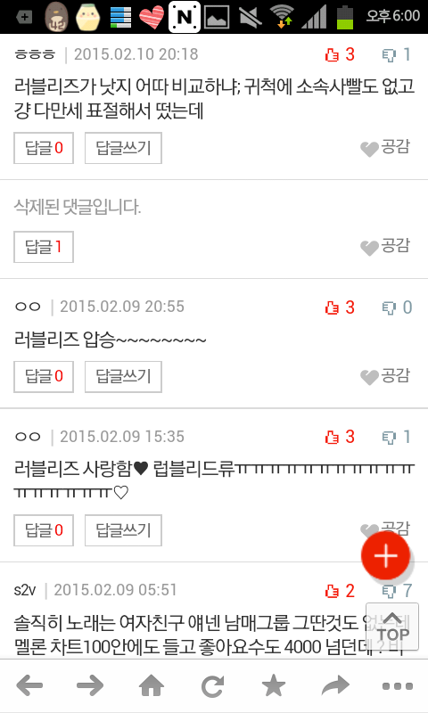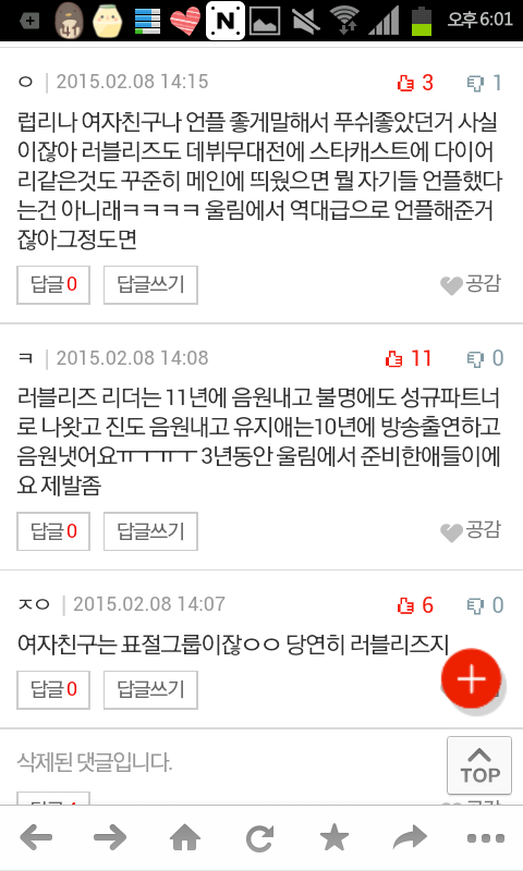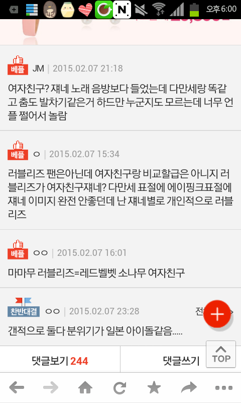 솔직히 좀 너무하다 비교글 보고 많이 섭섭했어 럽리즈 팬들아 너희 지금 레드벨벳이랑 비교글 올라오면 투표수 럽리즈가 더 적으니까 추반수 맞추라는 둥 그만 언급하라는 식으로 피코하잖아 너희 근데 다른 듣보돌들한테는 너무한 거 아냐? 여자친구가 아무리 니들한텐 하찮게 보여도 이건 좀 아니지 ㅋㅋ;