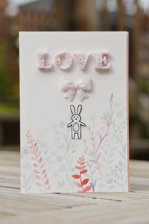 수채화로 배경 그려줬어요. 토끼는 스탬프