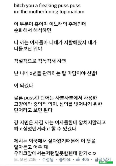 지민이 얼마 전 부른 puss 뜻