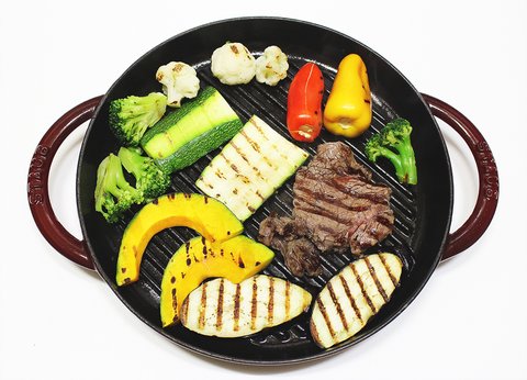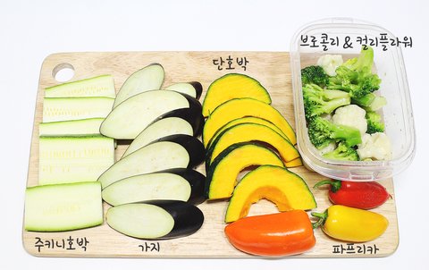 주키니 호박, 가지, 단호박, 파프리카, 브로콜리, 컬리플라워랑 쌈 채소를 준비해서 고기와 함께 만들어 보았습니다.