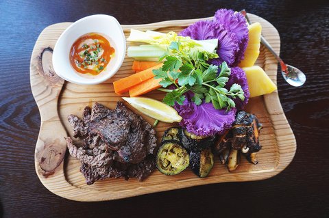 다음은 찍어 먹을 채소와 고기를 구워만 주면 되겠죠?