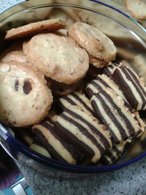 이건 남자친구한테 선물받은 쿠키책에 있는 녹차쿠키레시피로 만들어본 녹차쿠키와 좀변형해서 만들어본 딸기아몬드쿠키에요! 변형해서 만든게 더맛있었다는...