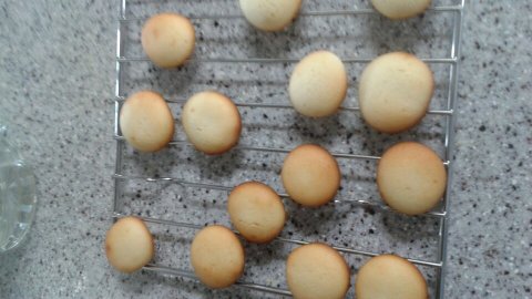 쿠크다스는 반죽이 묽어서 도구없이 집에서 만들땐 시중에서 파는것같은 직사각형 모양이 안나온다네요...그래서 동글동글 조그맣게 구워서 가운데 초콜렛 샌드했어요~맛은 쿠크다스랑 비슷해요!