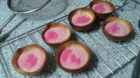 마지막으로 온도조절을 잘못해서 타르트지가 조금 타서 아쉬운ㅠ(탄맛은 안났는데 모양이...) 딸기가나슈타르트입니다!평소에 초콜렛을 좋아해서 딸기맛가나슈를 필링으로 했는데 역시 맛있었어요!