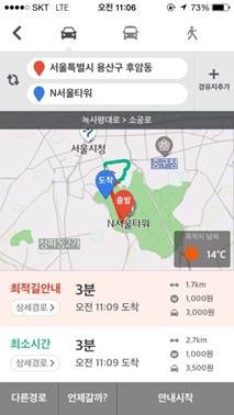어플리케이션 뿐만 아니라 실제 네비게이션과 비교를 해봐도