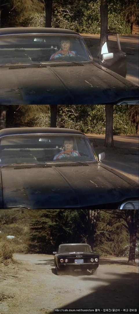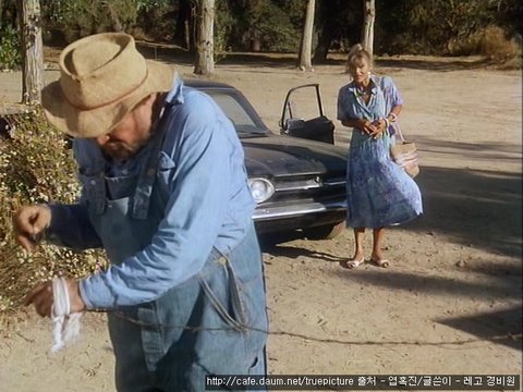 다가오다 말고 갑자기 농부 근처에서 멈춰서는 검은 차 한 대...