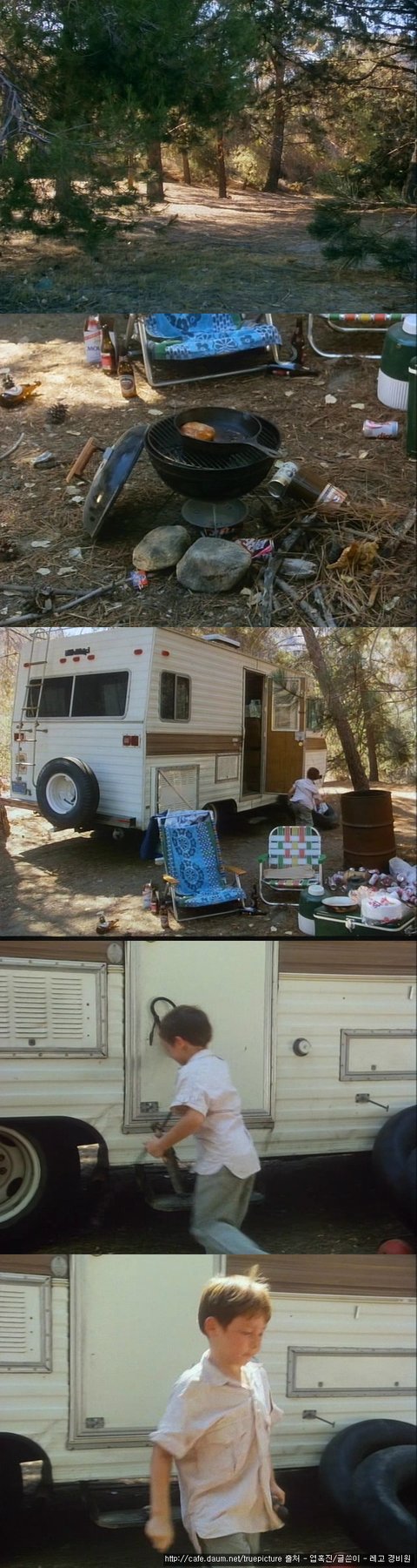 배경을 바꿔, 이번엔 숲속에서 캠핑카를 몰고 캠프중인 한 가족.