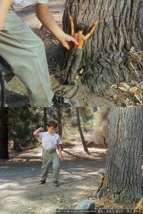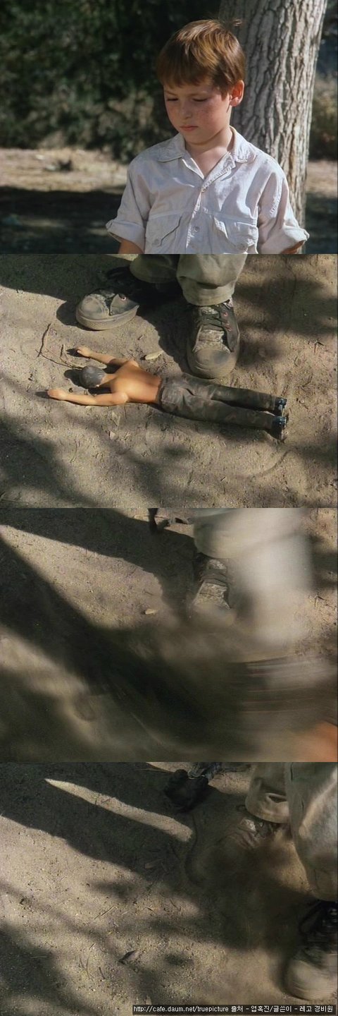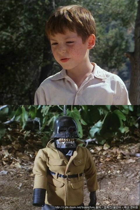 그리고는 왼 손에 들고 온 지아이조 인형을 바닥에 세우는 꼬마,