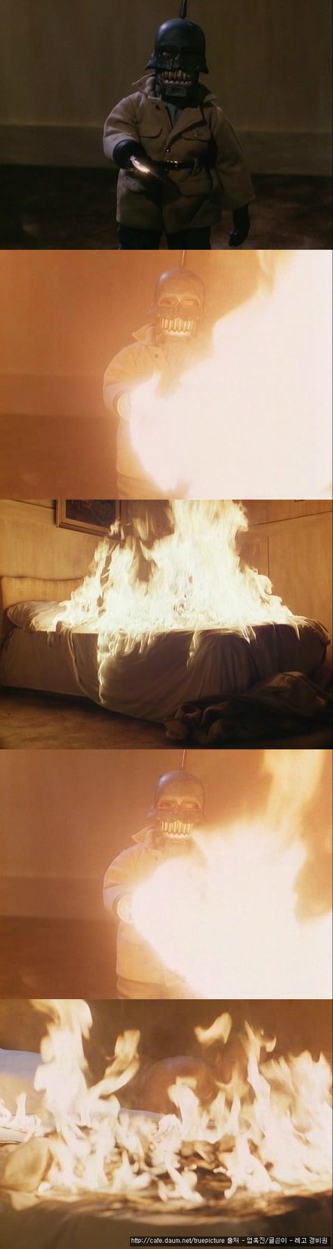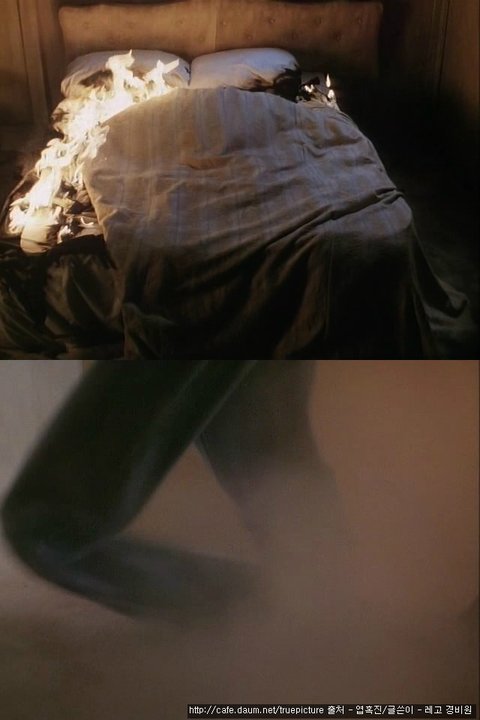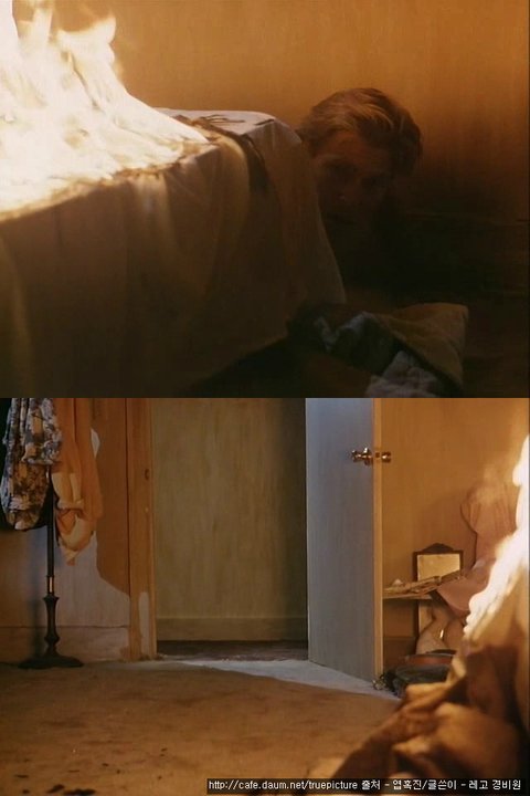 사실 불이 뿜어질 때 침대 옆으로 굴러 내려가 숨어 있었습니다!
