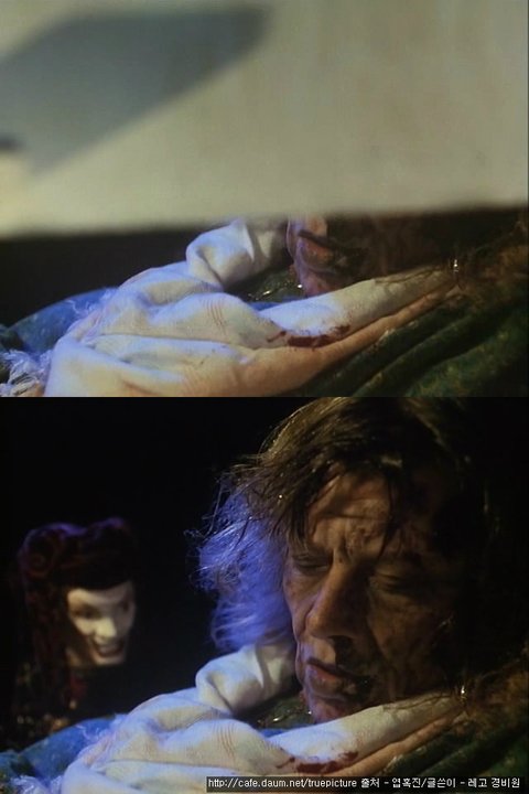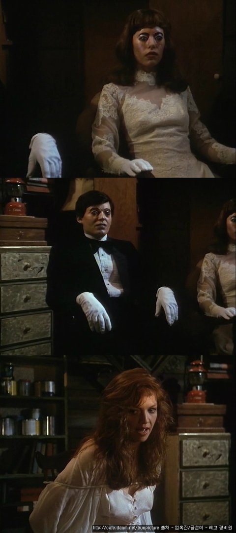 뒤의 서랍 안에 숨겨져 있던 흰 드레스를 꺼내 캐롤린에게 덮어주는 툴롱...