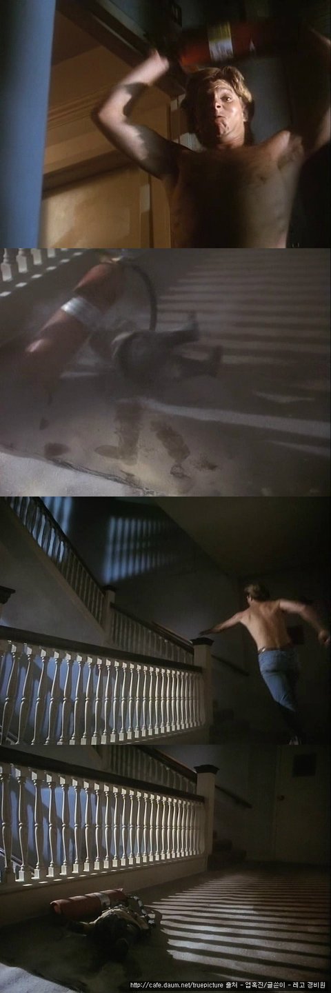옆에 걸려 있던 소화기를 뿜으며 반격하는 마이클!!