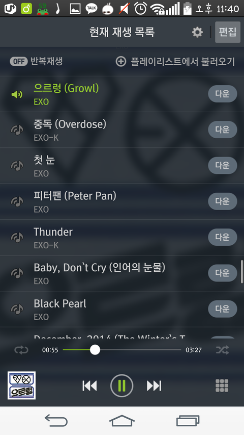 왼쪽 상단에 반복재생 저거로 하면 스밍 안된다는거야?