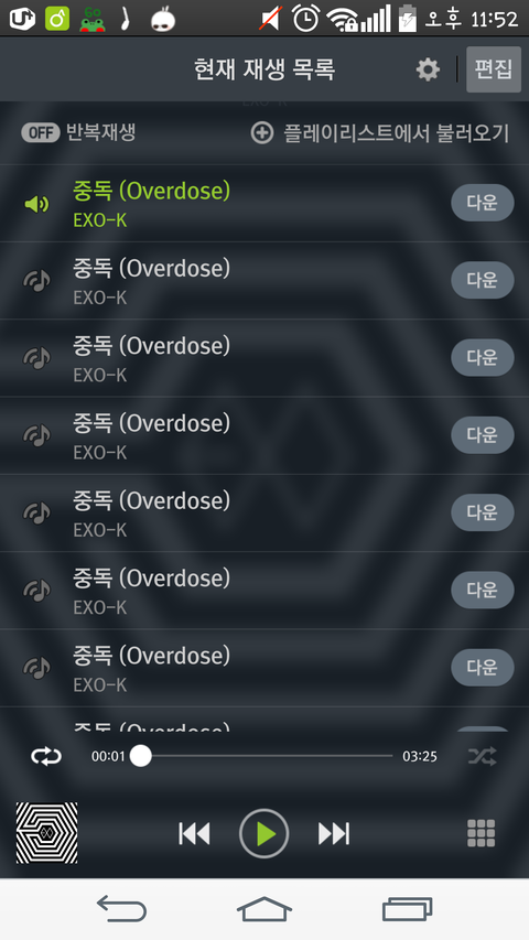 중독이 콜베라 치면 저렇게 20곡정도 넣고 전체반복 스밍가능?