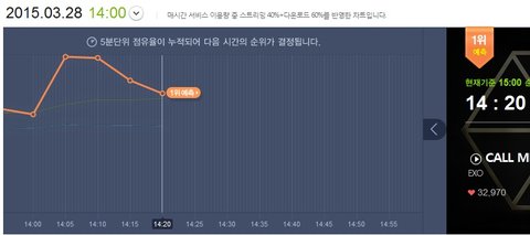 2시에 엑소가 2위가 됐기때문에 주황색이 엑소임