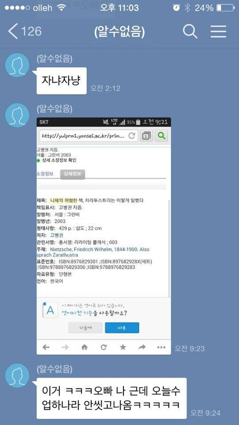 저번학기 시험기간에도 우리도서관에서 책 3권이나 빌려달라고 해서 빌려줬더니 안 돌려줘서 독촉해서 겨우 받아넴 물론 연체료도 납부 했지.