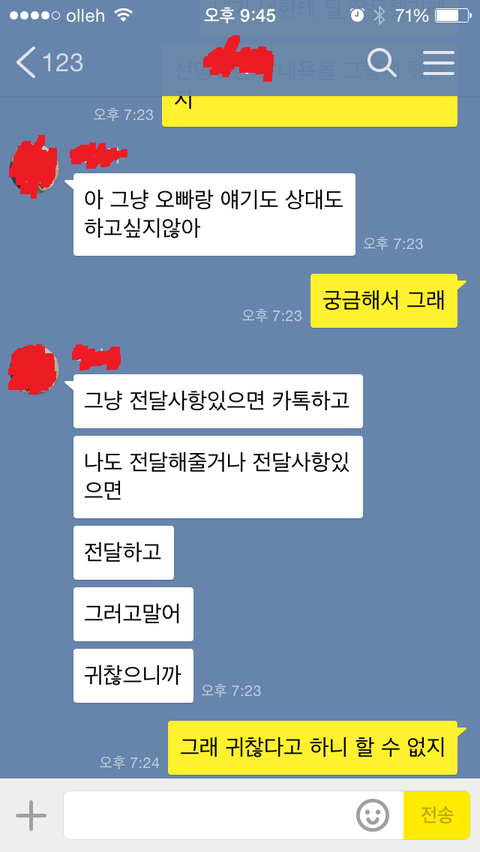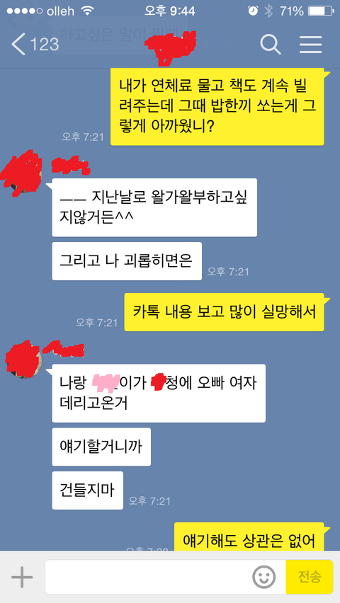 몇 분이 댓글에 남자가 찌질하네 거절 못 하네 이러시는데 똥이 무서워 피하나요? 더러워서 피하지 거절 못한다고 하는데 이년 거절하면 어떻게든 받아 쳐 먹으려고 끝까지 사람 괴롭힘. 예시로 밑에 사진보면 술쳐 먹고 와서 부침개 먹고 싶다고 해달라고 해서 돌려서 좋게 거절하려고 했는데 이년 끝까지 괴롭힘 결국 새벽한시까지 전화해서 해달라고 조르길래 "잠좀 자자"하고 끝남. 이후 거절하면 계속 카톡날라오고 전화와서 괜히 여자친구 있는데 연락오면 오해 살것 같아 귀찮아서 들어줬음, 근데 나만 그런줄 알았는데 보니까 이남자한테 안되면 저남자한테 부탁하고 여기서 안되면 저쪽에 부탁하고 그리고 부탁 안 들어준다고 다른사람한테 욕하고 다니거임.