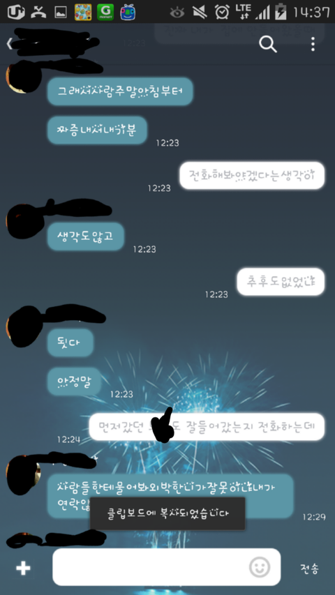 저는 혼자 독립중이라 남자친구가 그날 왔었는데 저는 친구들과약속이 있어서 나갔다온다고했더니