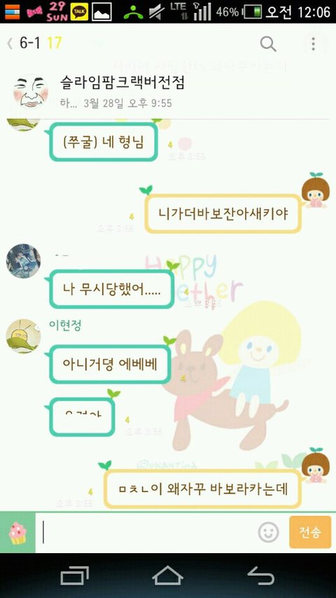 굽실데고 남자만밝히는애야, 입학하고 걔는친구랑 다니는데 지나갈때마다 나한테 바보ㅋ이러면서매일볼때마다 그러면서가고 입술은 뻘겋게다닌단말이야 근데 사진보면알수잇듯이 나를무시하고 눈치없이계속그러고 화내니깐 대충사과하고 딴청피워, 내가 너무과민반응하는건아닐까 싶은데 조언부탁해!