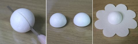 1. 꽃 밑둥에 글루로 스티로폼 볼에 붙여주세요.