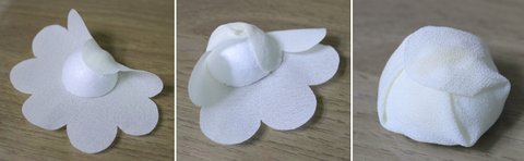 3. 밑면에 글루칠하고 꽃잎재단원단가운데 붙여주었어요