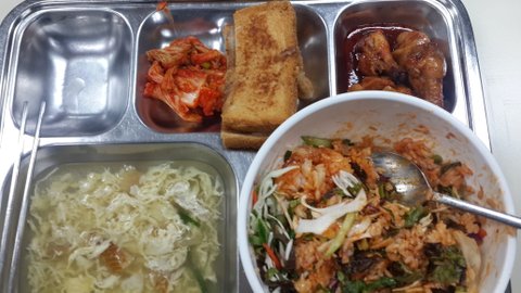 4500원이 이정돈데.. 이것도 반찬 한개 안받은거에요 저건좀 심했네요 매일 저렇다면..
