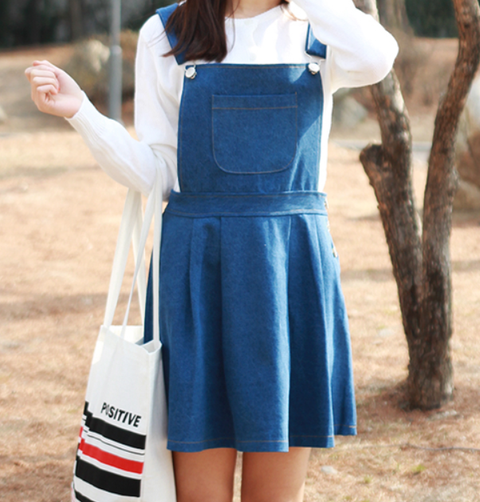 흰맨투맨+멜빵치마