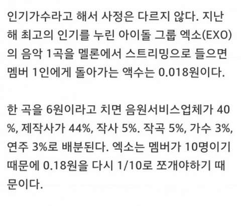 솔직히 음반 제외하고 (스엠이 많이 가져가겠지) 음원도 얼마 못벌고 음방도 그렇고 cf 나 브랜드 광고가 개꿀임