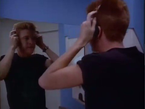 흠칫 놀라서 헤드셋 벗어재끼는 남자...