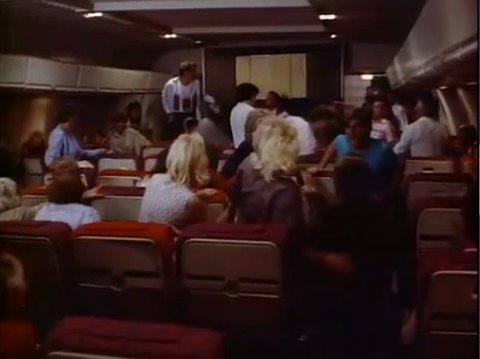 테러리스트는 스위치를 내려놓고, 스튜어디스들이 남자를 안전한 곳으로