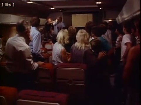 테러리스트가 스튜어디스랑 실랑이를 벌이는 동안, 뒤에서 접근하고