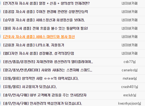 업직종별 기업의 인재상과 직무역량에 맞는 합격자소서를 작성하시길 바랍니다.