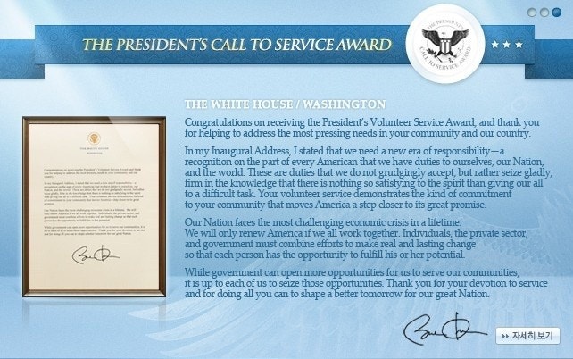 미국 대통령인 버락오바마로 부터 받은