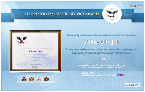 개인이나 단체에게 주는 평생 봉사상이라고 합니다~